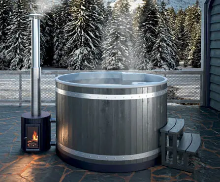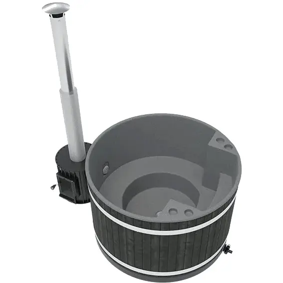Le spa est chauffé avec poêle externe de couleur argentée qui convient pour les bassins de taille moyenne (M).