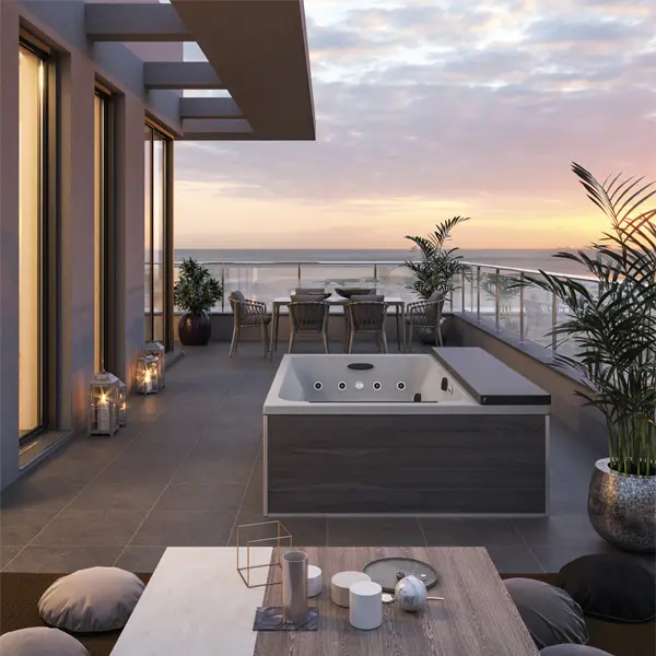 Facile à mettre en œuvre grâce à son faible poids, idéal pour les terrasses et les petits espaces, ce spa en duo est la solution pour un quotidien détendu et plus serein. Parfait pour se déconnecter en un rien de temps ! Existe en version tête à gauche ou tête à droite.