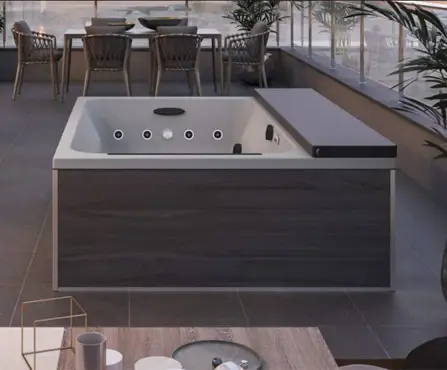 Facile à mettre en œuvre grâce à son faible poids, idéal pour les terrasses et les petits espaces, ce spa en duo est la solution pour un quotidien détendu et plus serein. Parfait pour se déconnecter en un rien de temps ! Existe en version tête à gauche ou tête à droite.