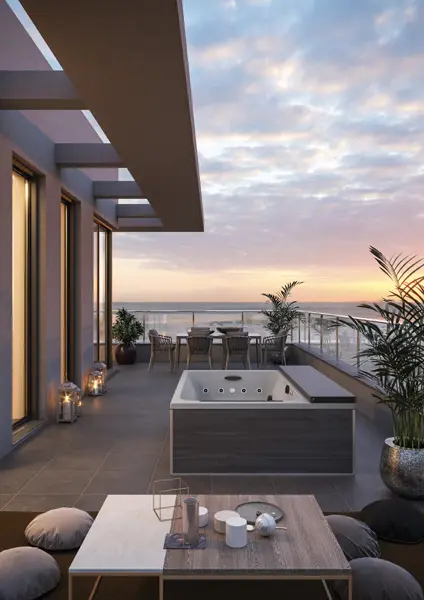 S’installe sur une terrasse ou un balcon (charge au sol limitée à 250 kg/m2) facilement grâce au plug and play.